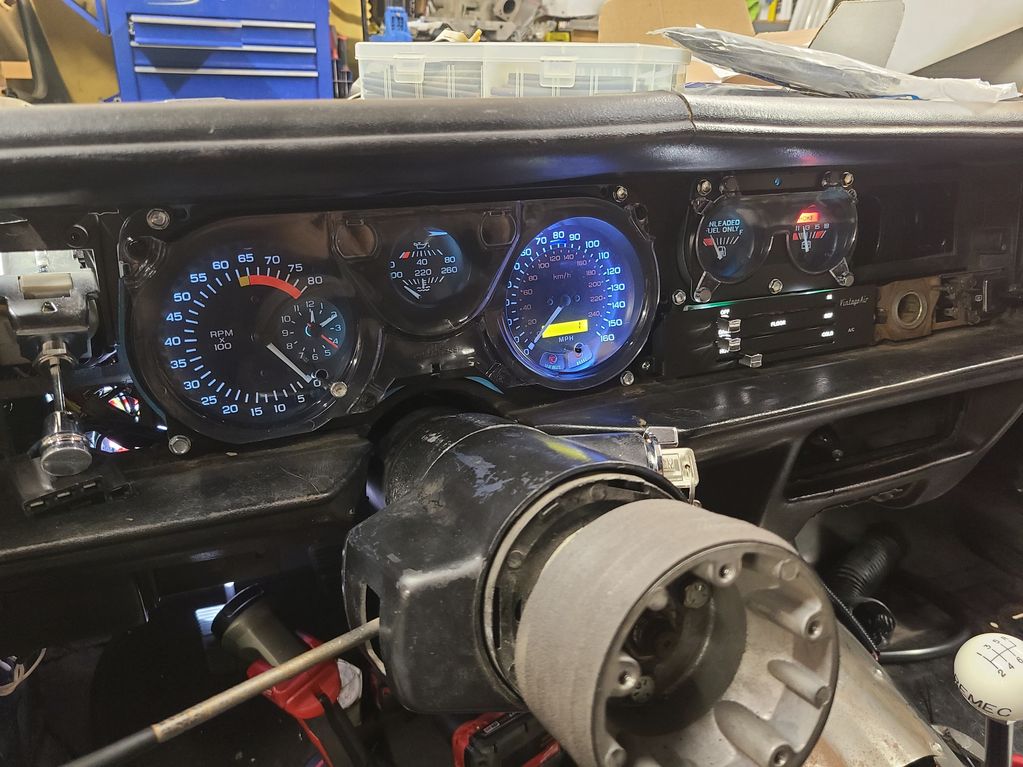This is fitted with Autometer tachometer and speedometer to complement the new LS drivetrain.